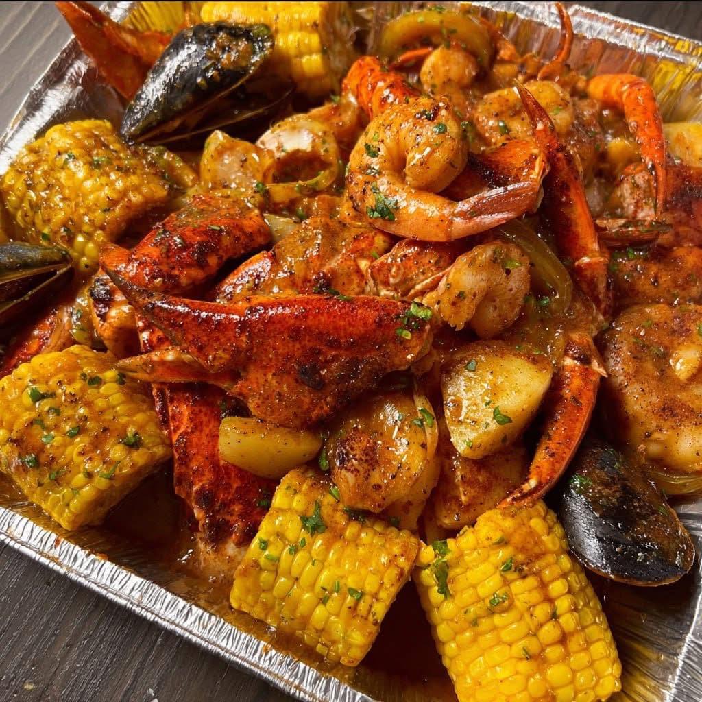 Garlic Butter Cajun Seafood Boil 🦀🦐🌽