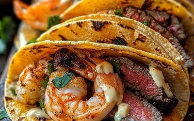 Gourmet Surf and Turf Tacos 🌮🥩🦐 Introduction These Gourmet Surf and Turf Tacos bring the best of both worlds—tender, smoky…