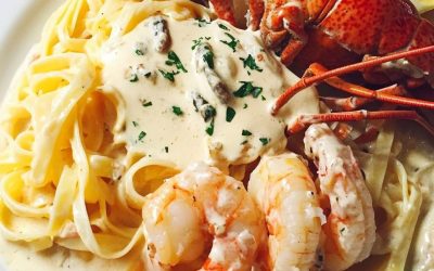 Lobster and Shrimp Fettuccine in Creamy Sauce