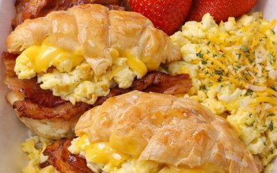 Croissant Breakfast Sandwiches Loaded with Bacon, Eggs & Strawberries