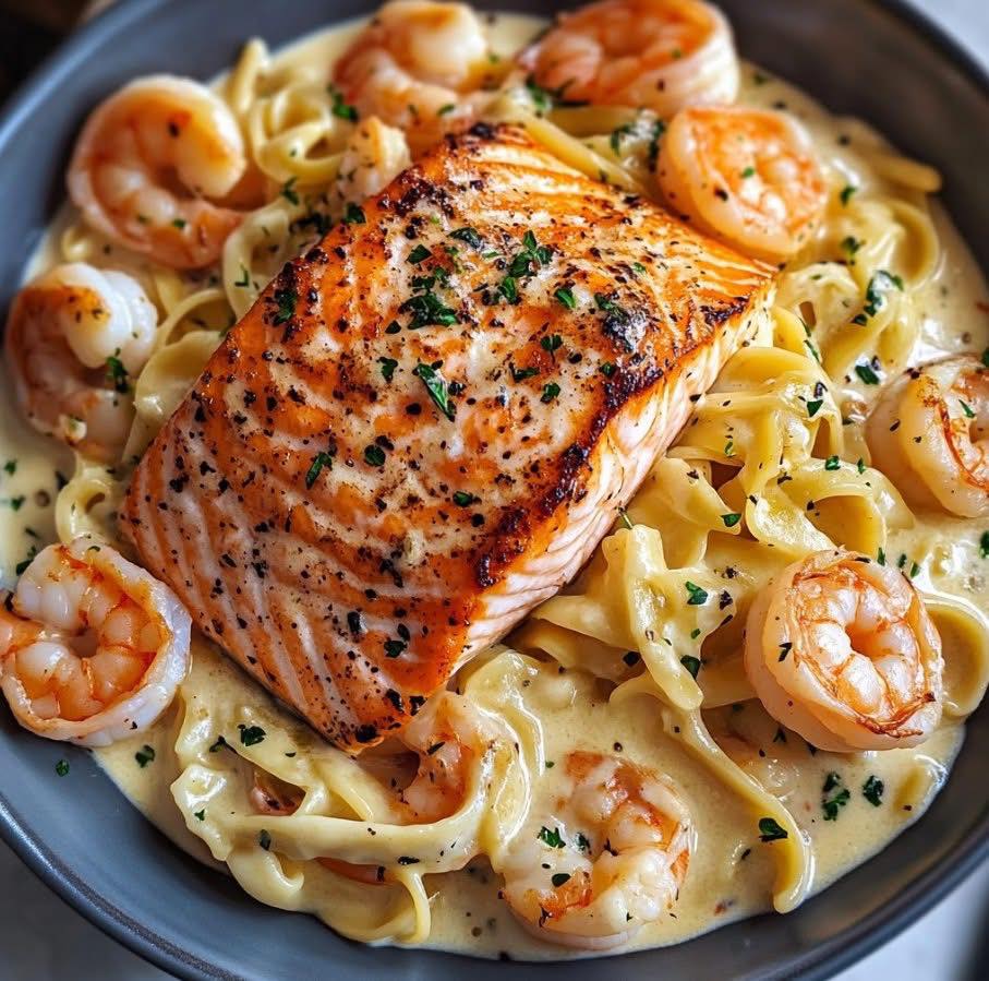 Salmon and Shrimp Alfredo 🐟🍤🍝