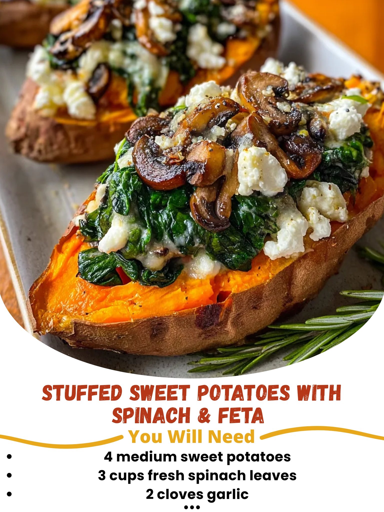 Stuffed sweet potatoes are one of those meals that feel both comforting and nourishing at the same time, and this spinach and feta version strikes that balance beautifully. The natural sweetness of roasted sweet potatoes pairs perfectly with savory sautéed spinach and the salty, creamy bite of feta cheese. It’s simple enough for a busy weeknight but elegant enough to serve when you want something wholesome and satisfying. Warm, colorful, and full of flavor, this dish proves that healthy food can still feel cozy and indulgent.